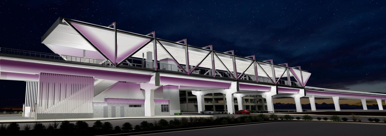 Light rail passenger station at Metrocenter Mall.